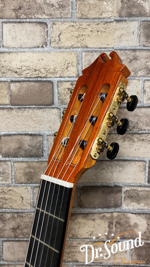 ホアン・エルナンデス最上位機種のMaestro、裏横の木材にココボロを使用しており、稀少性もさることながらローズウッドとは異なった硬質な音色をお楽しみ頂く事が出来ます。