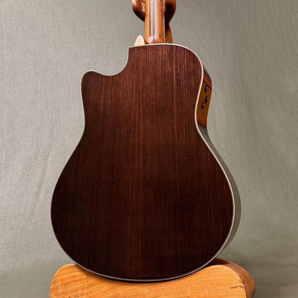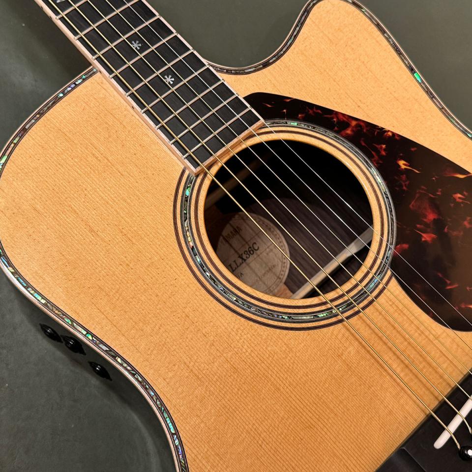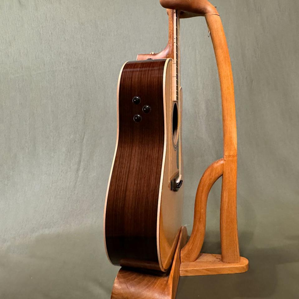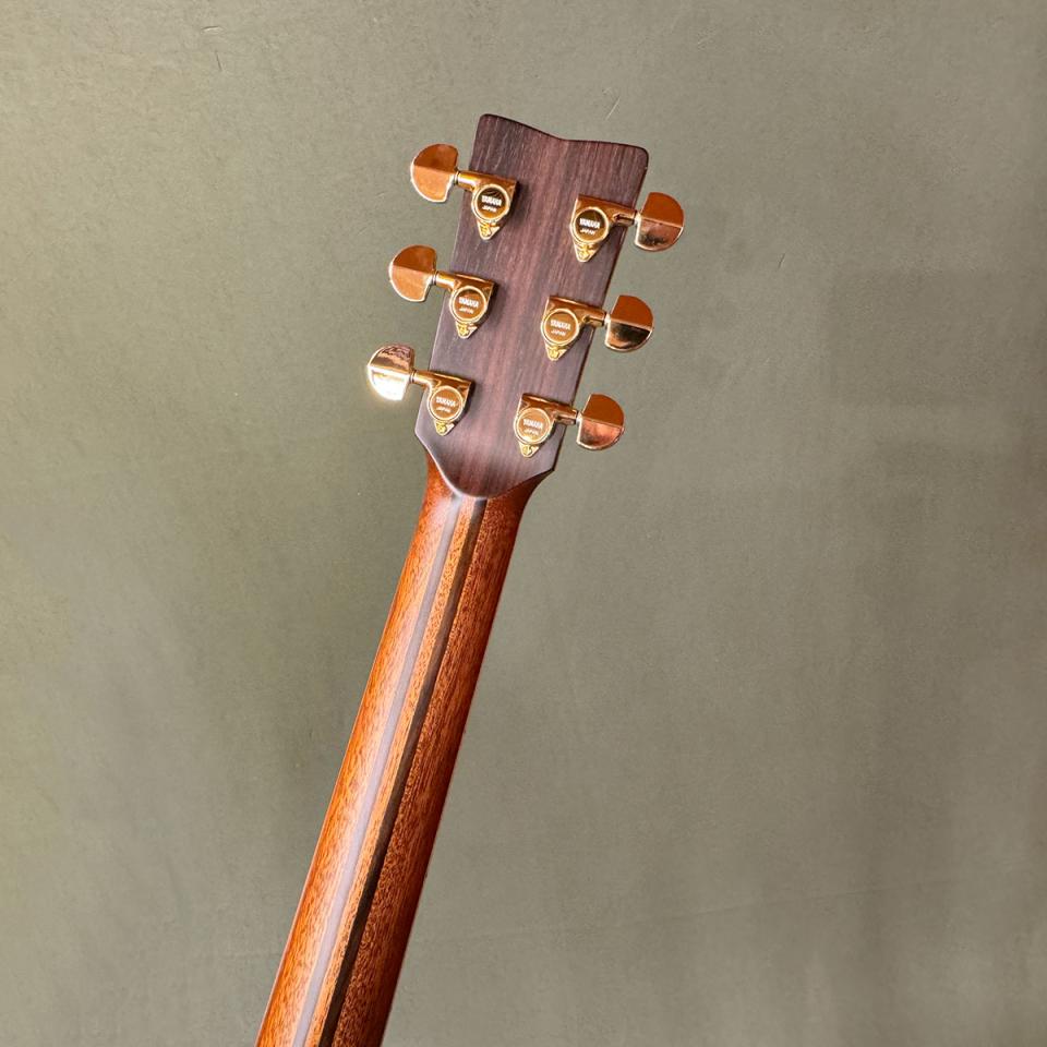 厳選された材と熟練の技が集約された完成度の高いミディアムジャンボタイプのギターです。優れたレスポンスと、幅広い音域で豊かに伸びる音色が特長のイングルマンスプルース単板をボディトップに採用しました。サイド&バックにはインドローズ単板を採用。ノンスキャロップ・Xブレイシング、スクエア・フレーム構造、新開発Cブロックが、ギター全体を力強く響かせ、太くハリのあるサウンドを生み出します。