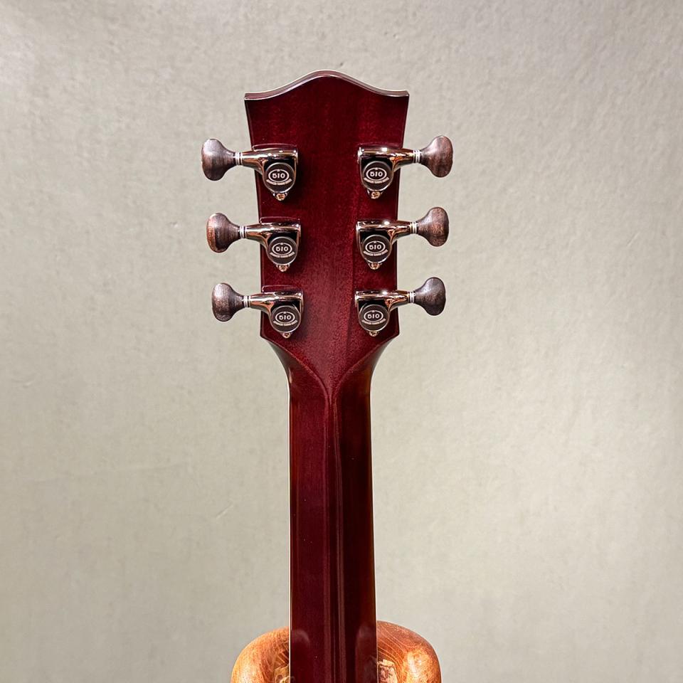 全体は上品なセミグロスフィニッシュでまとめ、ヘッド・ネックにもバインディングを施した 高級感あふれる仕上がりです。