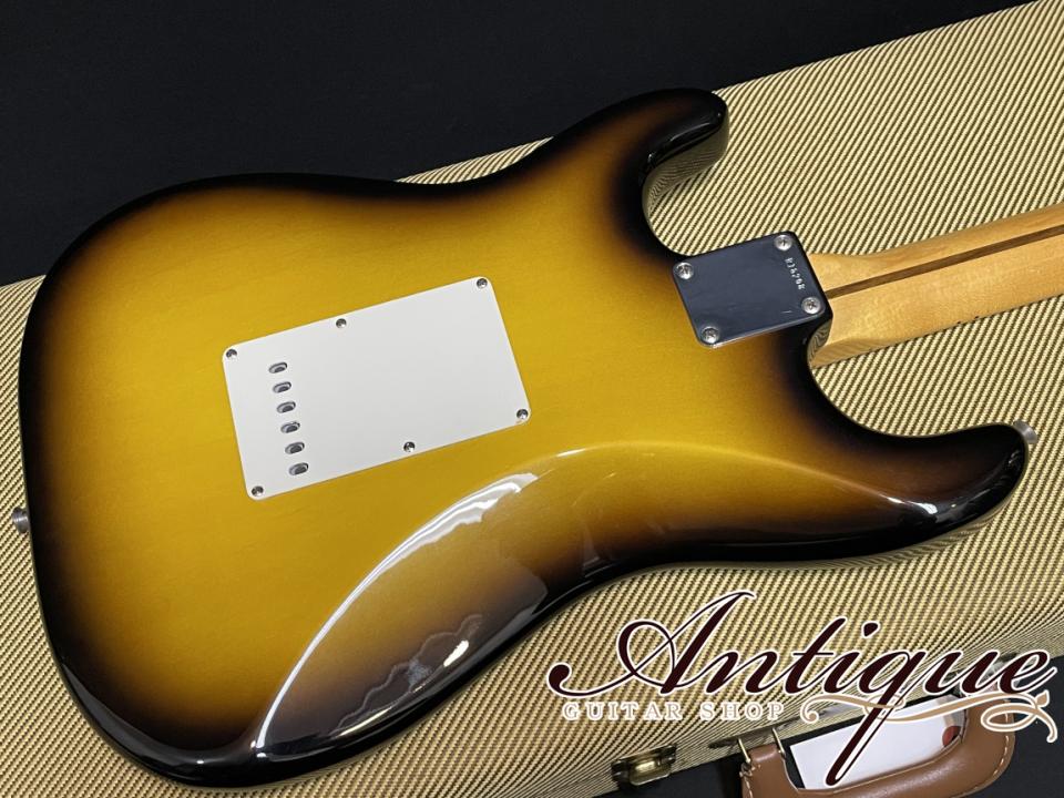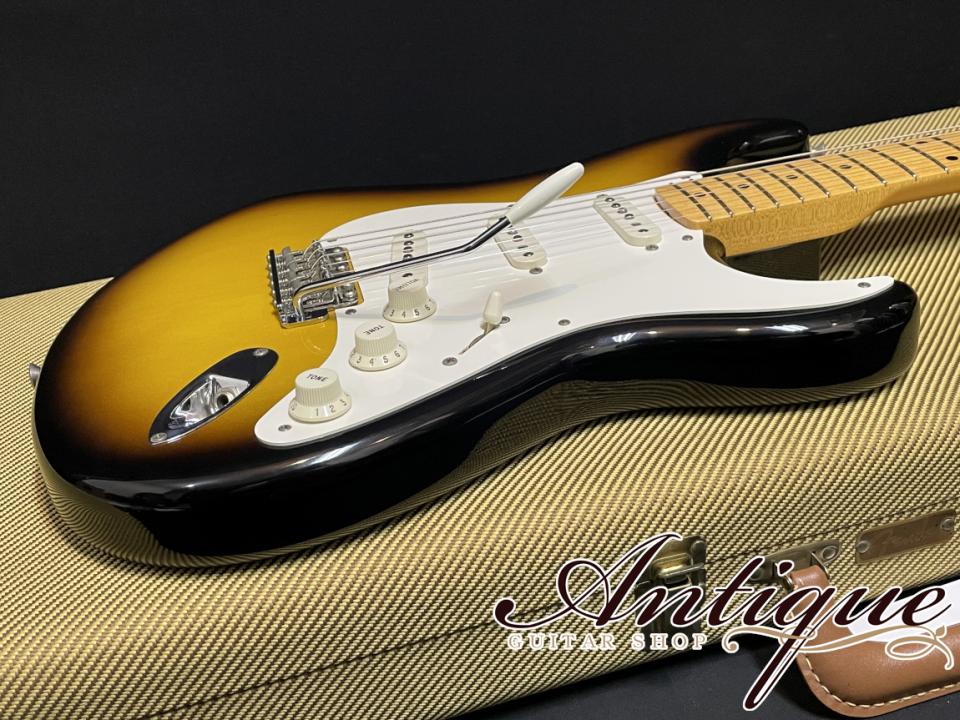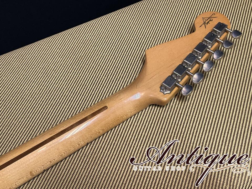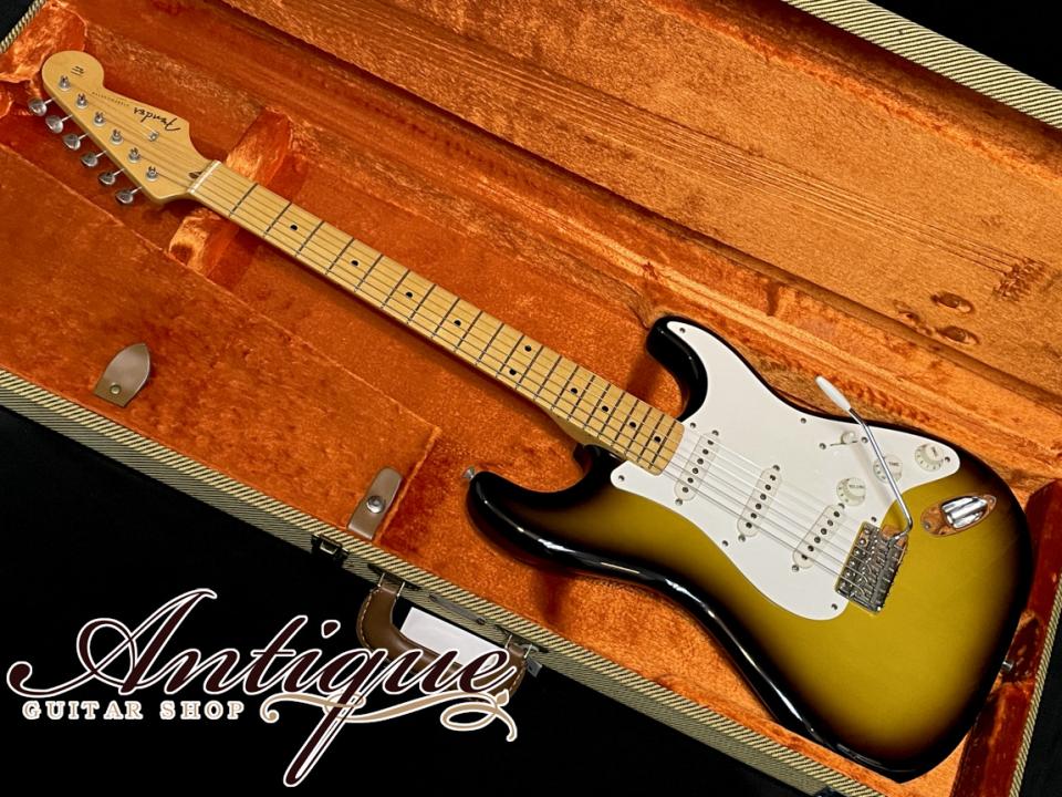 今回ご紹介させて頂くのは、当時の国内正規代理店である山野楽器が特注オーダーをした、クラプトンのBlownieを意識して製作された1956モデル。2トーンのサンバースト、端正な杢目を持つアルダー材、スカンクストライプの入った1ピースのメイプルネック、Soft Vネックプロフィール等、1956年製のリイシューモデルではありながら、誰しもがこれを見たらBlownieを彷彿させるファンには堪らないスペック。更にこちらはファーストオーナー様が当時新品で購入されてから、大切にされてきたことが伺える内容で、変更・リペア歴の無いフルオリジナルに加え、ニアミント手前となる極上美品コンディションをキープした一本となります。