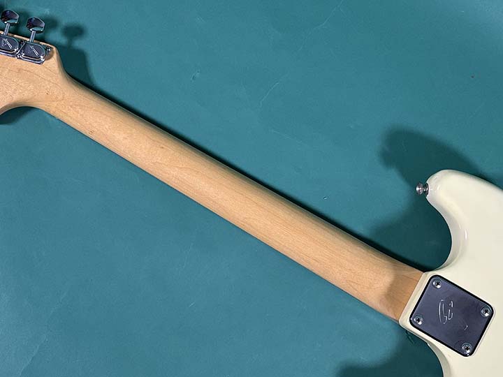 ボディはアッシュ、ネックはメイプル、指板はローズウッド、スケールは24インチ、ナット幅は40.7mm(実測)、ピックアップはオリジナルのシングルコイルが2基マウントされております。