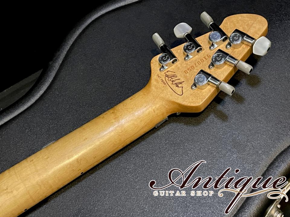 最後に状態としては、こちら1997年製と既に27年の歳月が経過しておりますが、それを微塵も感じさせない奇跡的な状態をキープ。神経質に見渡せばボディバックに僅かなスレや、バックパネル類やジョイントワッシャーにスレやくすみこそ見受けられますが、打痕や深いスクラッチは皆無、更には薄いピッキングスクラッチすらございません。その他金属パーツの状態も良好で、塗装のツヤも非常にキレイに残り、フレットも保管時の弦スレ程度で95%以上残っており、ありがちなネックバックの黒ずみも無く、このまま新品で販売されていたとしてもおかしくない最高のデッドストック・ミントコンディションとなっております。演奏面としてもネックコンディションは良好でトラスロッドの余裕もシッカリと残っており、電装関係の不具合もございません。もちろんパーツ類は全て当時のままとなるハンダバージンのフルオリジナル。付属品類についてもパール楽器発行の保証書を始めとする一式が揃っております。ケースももちろん状態の良いオリジナルハードケースが付属致します。
