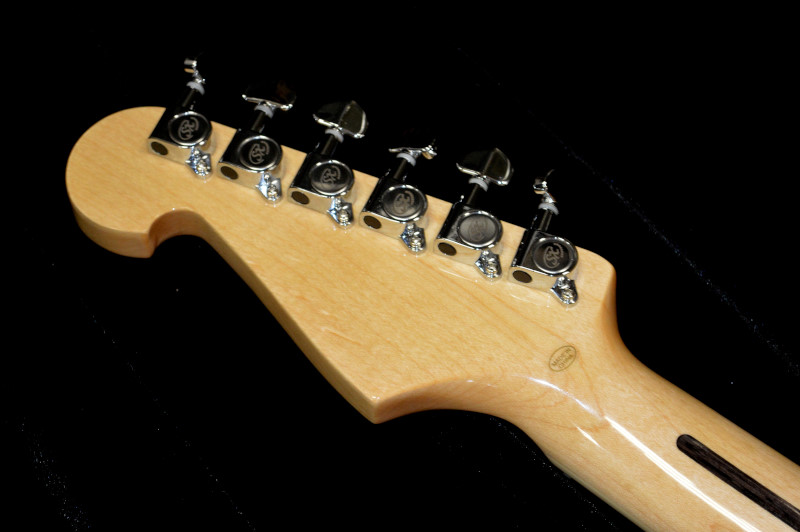 ピックガードはお洒落で高級感のあるホワイトパール柄です。ペグにはGrover Miniタイプのロトマチック使用で、