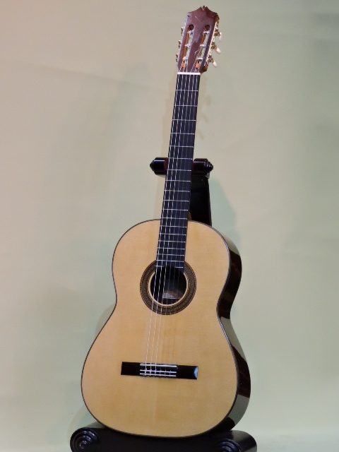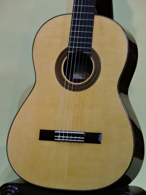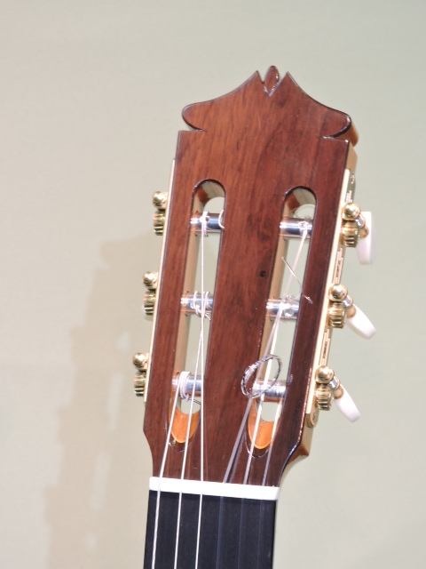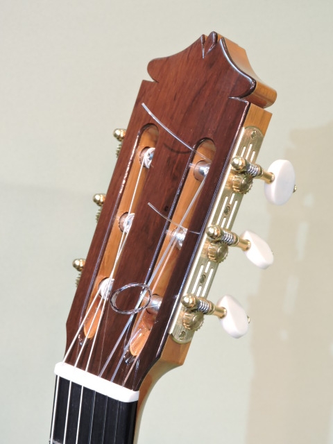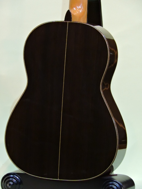 標準仕様では横裏板材はマダガスカル・ローズウッドですがこの作品は良質のハカランダにも見えます。