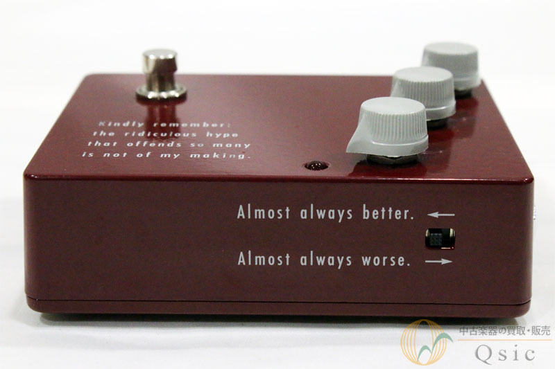 オリジナルと比べ、一部コンデンサーや機能の追加はあれど、基本的な回路やサウンドはCENTAURとほぼ同じに設計。サイズは小さく収まり、使い勝手が格段に向上しております。CENTAURの特徴である太く艶がある歪みは健在で、オリジナルに勝るとも劣らないゴージャスなドライブサウンドが得られます。もちろんオリジナルと同様にブースターとしても優秀で、迫力あるリードサウンドも奏でることが可能です。