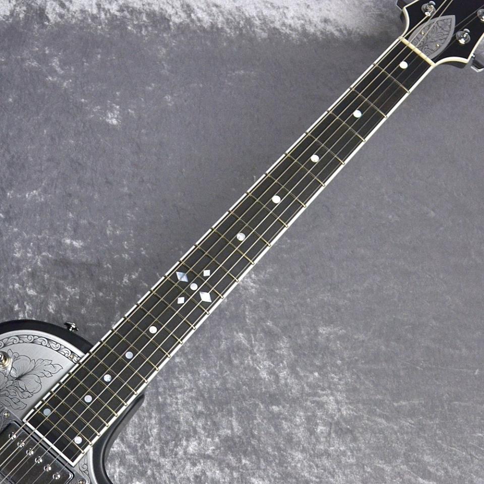 ウェストのくびれが大きいシングル・カッタウェイのボディ・スタイルで、ボディとネックに厳選されたアフリカンマホガニー、フィンガーボードはエボニーを使用しています。
