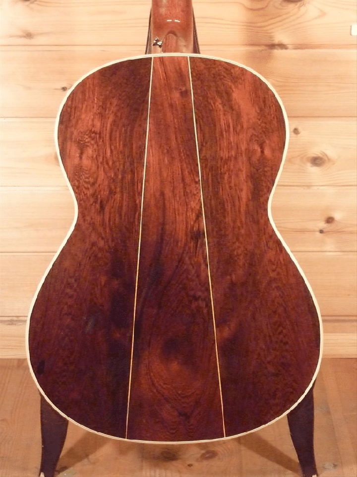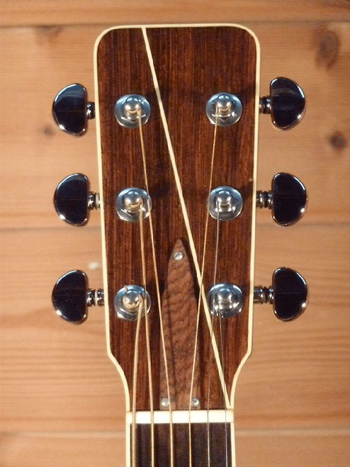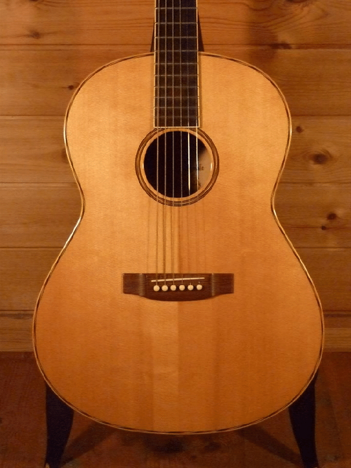 Martin00程度の小ぶりなボディシェイプでかわいいルックスですが、深みのある鳴りが堪能できるすばらしいギターです。