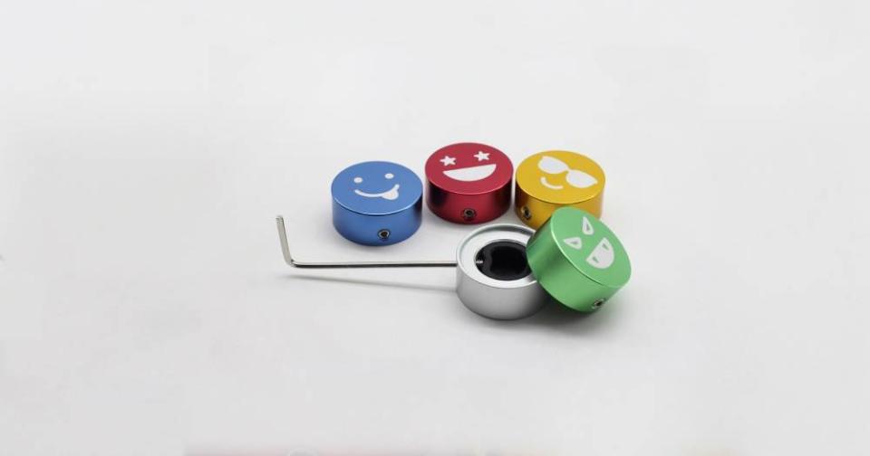 キュートな見た目で足元を彩る5種類のアルミ合金フットスイッチ・キャップです。1パッケージにはキャラクターの違うデザインのスイッチキャップx 5pcsと固定するための六角レンチが付属しており、標準的なフットスイッチにフィットします。装着時は側面の六角ネジを締め込むことで強固に固定することができ、デザインだけではなく操作性の向上にもお勧めです。