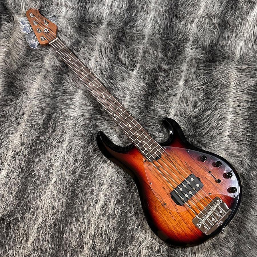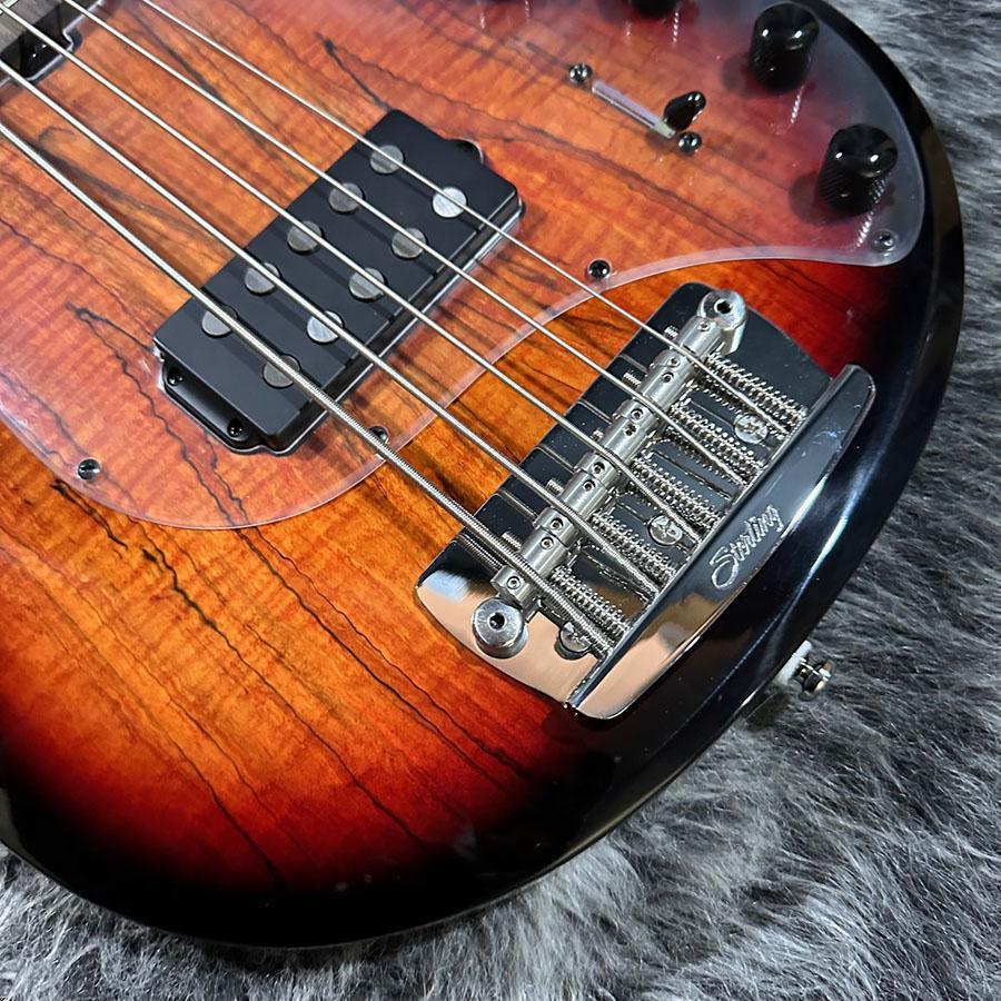 StingRay RAY35 Maple Topはローステッド・メイプル・ネック、3バンド・アクティブ・プリアンプ、モダンなコンター・ボディ、本家MusicmanのStingRayをモデルにしたブリッジが特徴の5弦ベース。トップには目を引くスポルテッド・メイプルを採用しています。