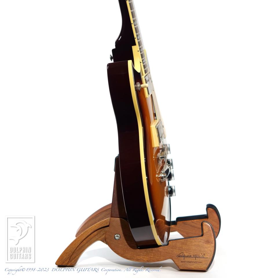ボディトップのアーチ形状は従来のSGシリーズよりも急カーブを描くように改良されています。ブリッジ&テイルピースを配置するボディトップは厚みのあるメイプル材で弦振動をキャッチし、そこからボディ外周に向けてメイプル材を徐々に薄くしていくデザインにすることで、弦振動のボディ全体への効率的な伝達と最適な重量バランスを得ています。