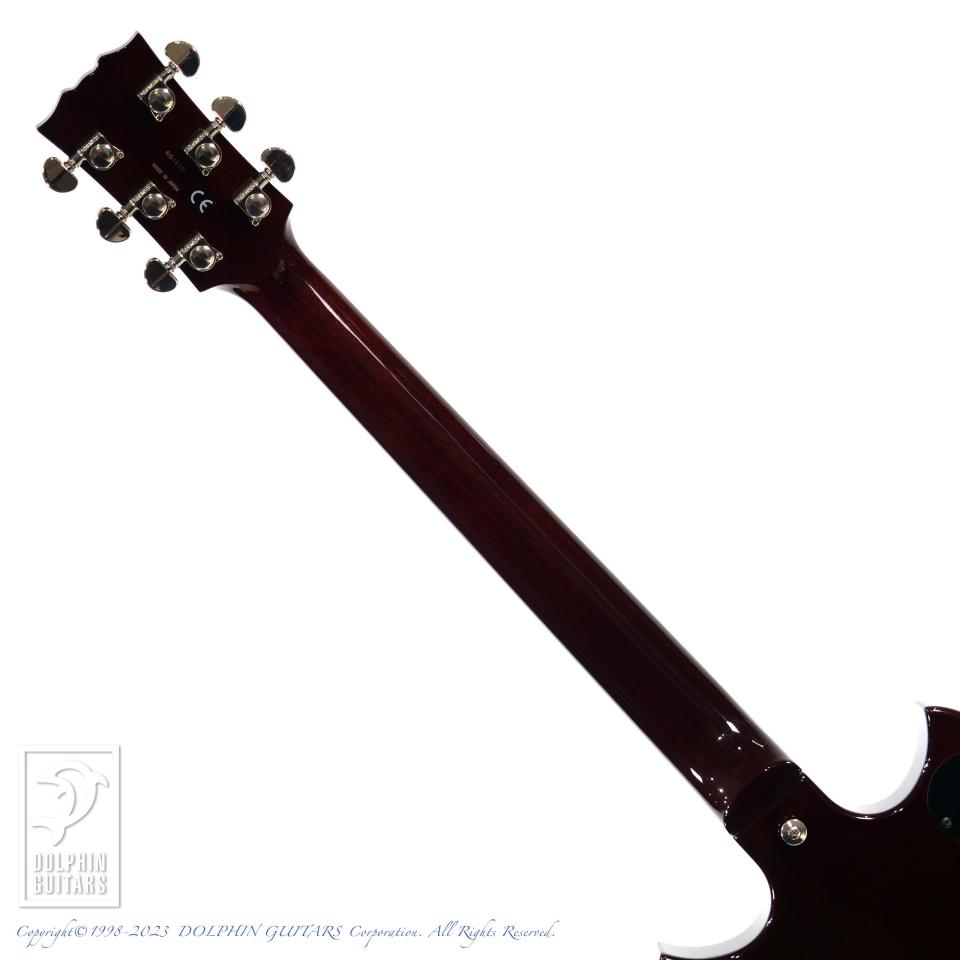 また、ギターを高い位置で演奏するプレイヤーのフィット感を高めるためにSG1000/2000/3000に採用されていたボディバックのコンターカットは、なくなりました。フラットバックにしてマホガニーの質量を増やすことでローミッドのレスポンスの向上を図られています。