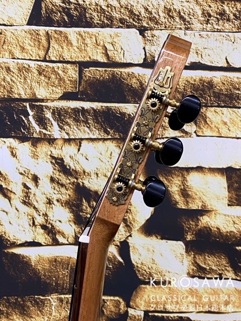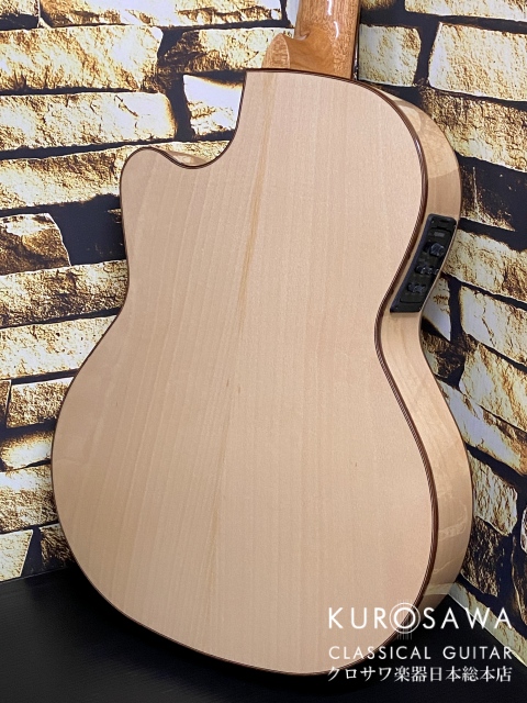 47mmの細いネックにアジャスタブルロッド搭載で万が一のネック反りにも対応。フラメンコ仕様のネック仕込みになっているため初期設定から弦高が低くセッティングされており弾きやすさは抜群に良いのでオススメです。Bodyの厚みも8cmほどなので薄く、女性や身体の小さい方でも楽に抱えられます。