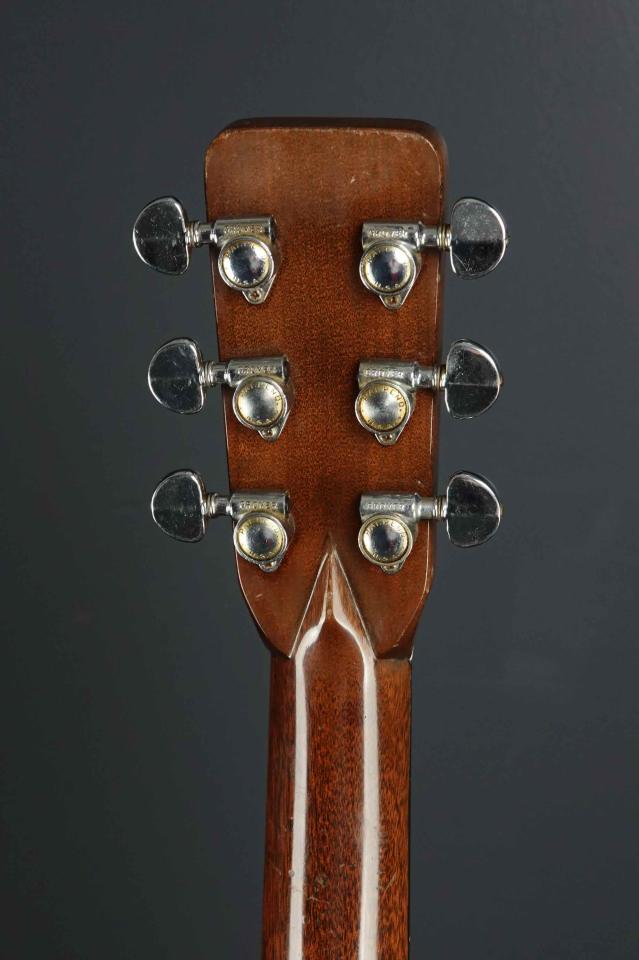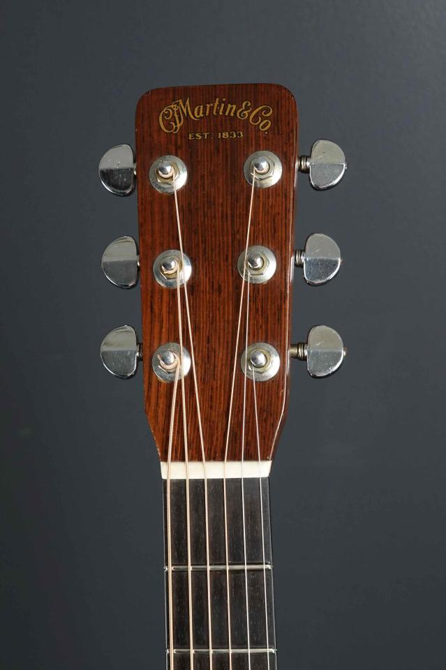 ヘッドは60年代中期らしくコナーが丸いヘッド形状、ハカランダのヘッドプレートには色焼けてダークなMartinロゴ、ペグは大きなワッシャーでパテント刻印の入ったグローバー102のロートマチックです。