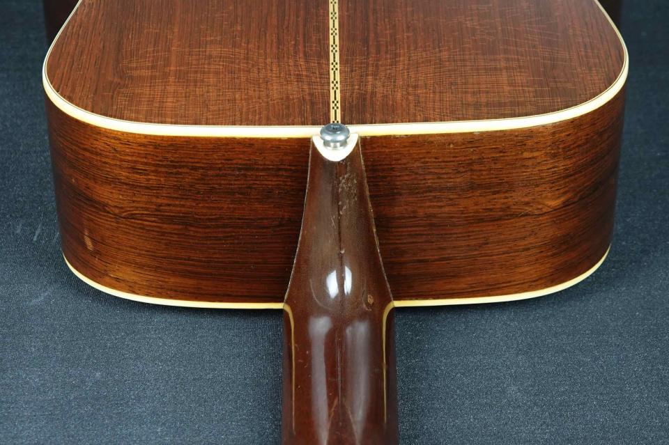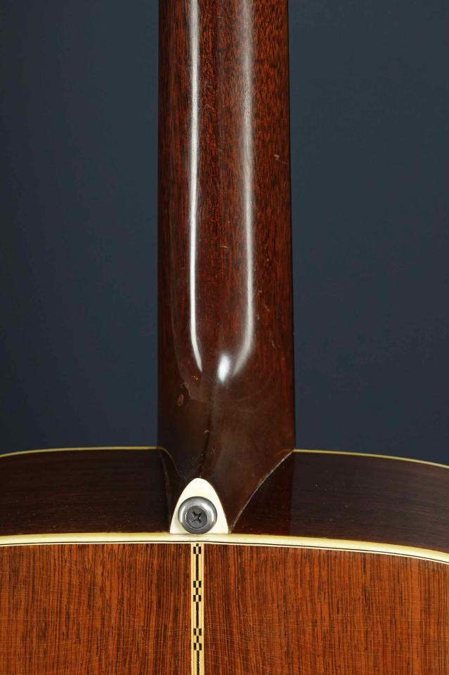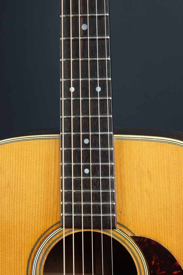ヴィンテージらしく程良く使い込まれた表情を持ち、弾き続け、メンテナンスしながら使われてきた楽器で、トップの1弦側エンド近くの端にクラック修理や、マーチンクラックの修理跡も有り、これら補修跡やブリッジ周りなどと、サイドやバック、ネック裏などにもタッチアップやオーバーラッカーも有ります。