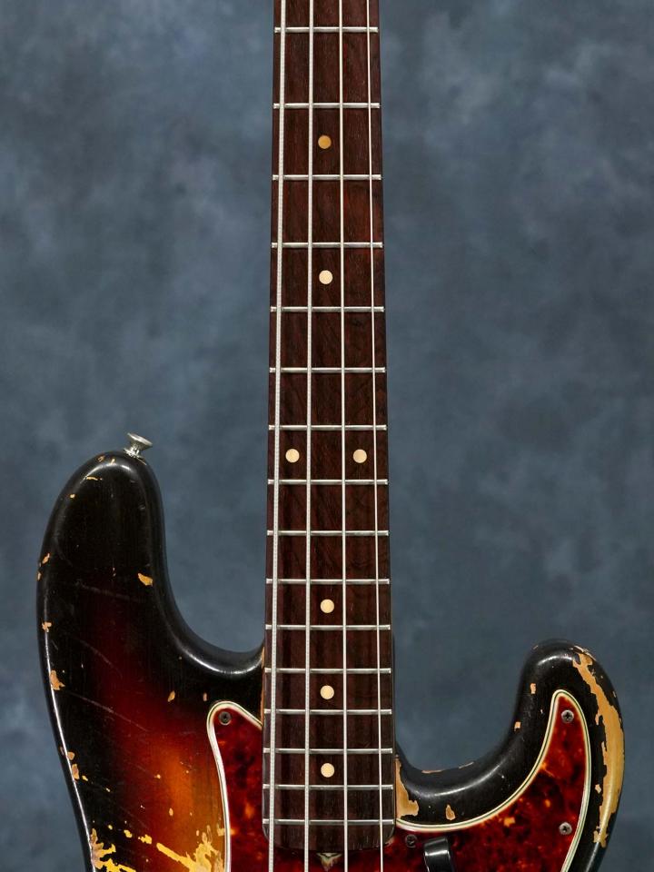 スラブボードの1961年ネックに1964年ボディの組み合わせ、圧巻のルックスと太く枯れた音色が魅力のFender Precision Bass。