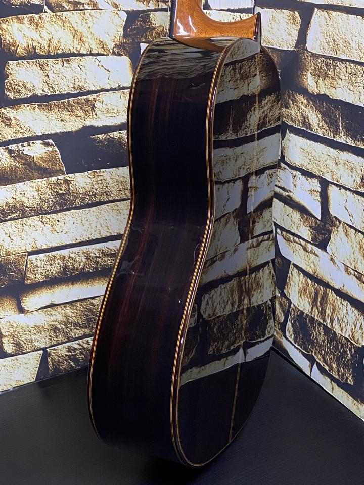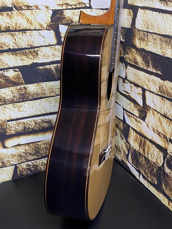 ヘッドの形やバインディングが美しく、材料、音量、音色ともハイグレードなモデル。力強い鳴りとバランスの良さが特徴的でコンサートギターにもお使いいただけます。