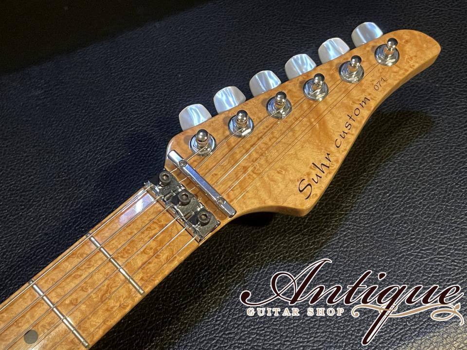 今回ご紹介させて頂くのは、Fender社でのマスタービルダーとして活動からSuhr Guitarsブランド(John Suhr Technology社)の立ち上げまでの期間に、僅か100本足らずのみの製作と言われる極めて最初期のJS Guitarブランドでの特別過ぎるカスタムオーダー品。ヘッドロゴも現在に至るまで採用されている”Suhr”ロゴでは無く、全く異なるフォントでの”Suhr Custom”ロゴが採用されます。その極めて高いプレミア性は国内流通はほぼ皆無、極々稀に海外市場で販売される事もありますが、10,000ドルを切ることはまず無く、状態によっては20,000ドル前後でも取引される程の”幻”のブランドとなります。