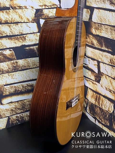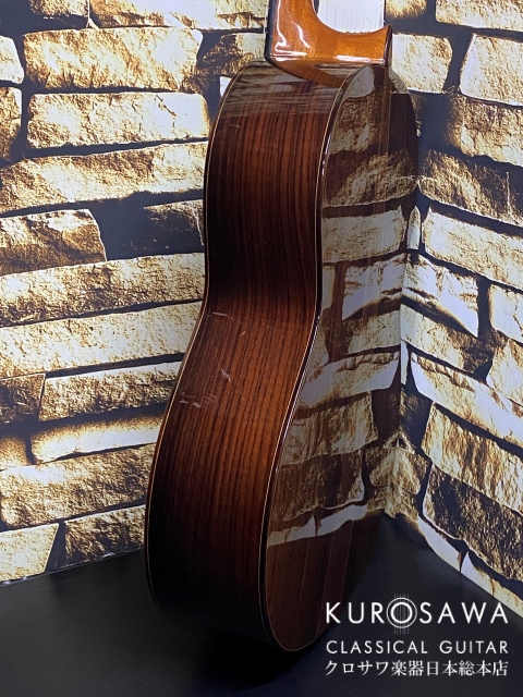 横裏板にローズウッド材を使用。音量もあり、明るく華やかな音色で、低音から高音までバランスの良い鳴りを誇ります。