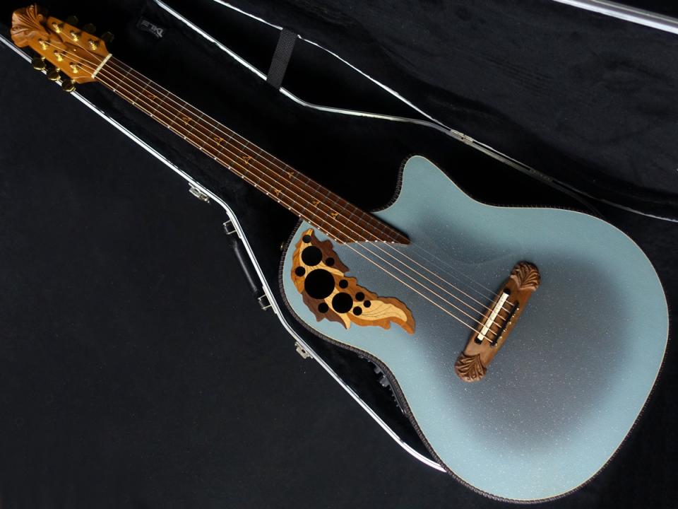 唯一無二のルックス、サウンドでデビュー以来大きな衝撃を与え続けている「Ovation Adamas(オベーション アダマス)」本機はダントツ人気のカラー「8」番で仕上げられた「2087GT-8」になります。