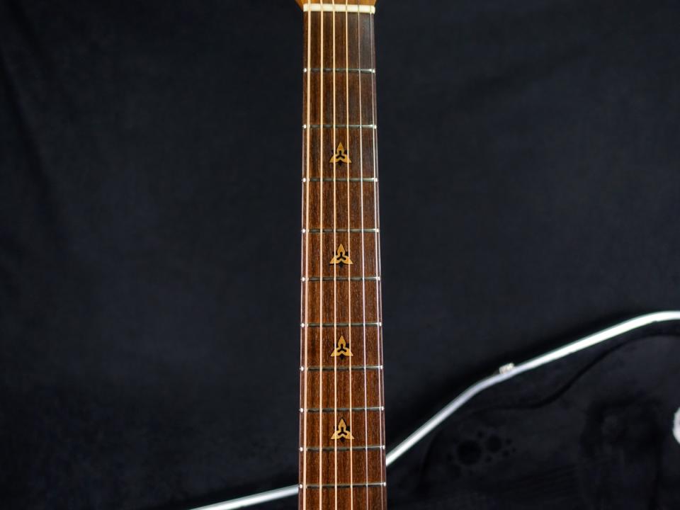 エポレットが施されたカーボンファイバートップ、リラコードによるラウンドボウルバック、ウォルナットネックを採用したAdamasでは王道のマテリアル。