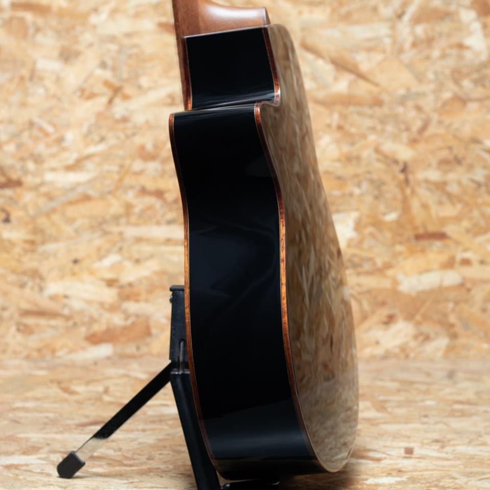 フィンガーピッカー向けに開発されたモーリスSシリーズ。半手工ラインにて製造される国産モーリスギターは大人数で製造される面影は現在はなく、各セクション毎に熟練したスタッフによって製造されています。本器は精悍なジェットブラック・フィニッシュ(JBK)とコアウッド・バインディングを採用した”S-101 III Black Edition”。高級感あふれる漆黒のフィニッシュをコアで縁取り、美しい曲線を引き立てたデザインです。トップには芯があり腰の強い特徴のサウンドのスプルースにサイド&バックには甘く深い音色が特徴のローズウッドというもっともポピュラーで人気の高い材の組合わせのモデルです。 エレガントさと素材のウッディな質感を表現しています。ジャンルやプレイスタイルを問わず、あらゆるプレイヤーに向けた特別なブラックモデルです。オリジナルハードケース付属