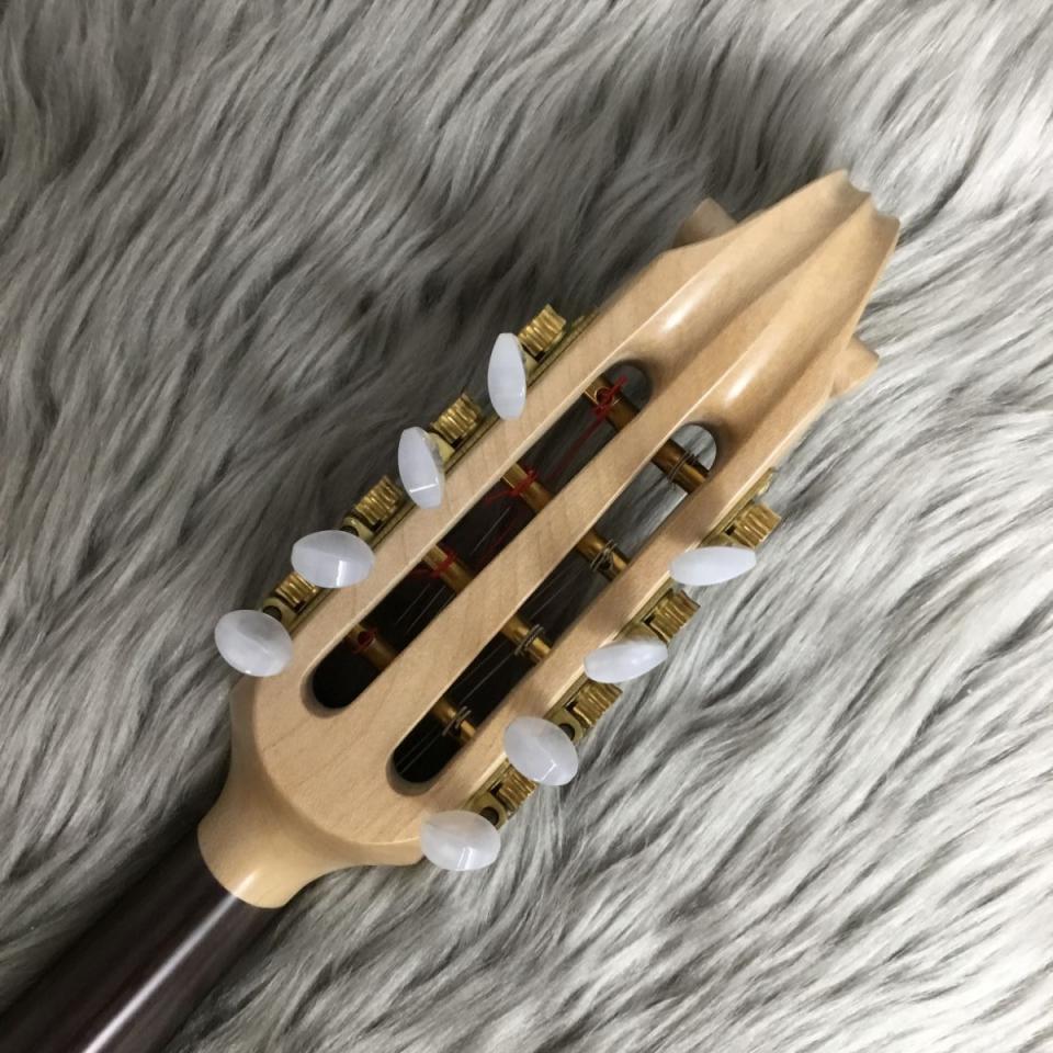 ナットから弦穴への角度の適正化に加え、ルブナー社製ギアマシンヘッドを採用することで、さらなる弦のテンションの改善がなされ、ヘッドのデザインもより合理的で美しいものとなりました。以前のモデル(M-4)と比べ、特に1弦と4弦のサステインが豊かになっています。