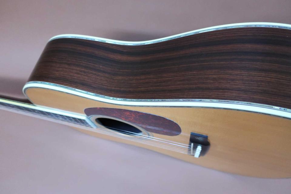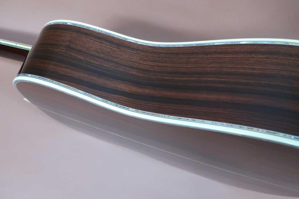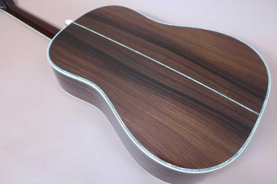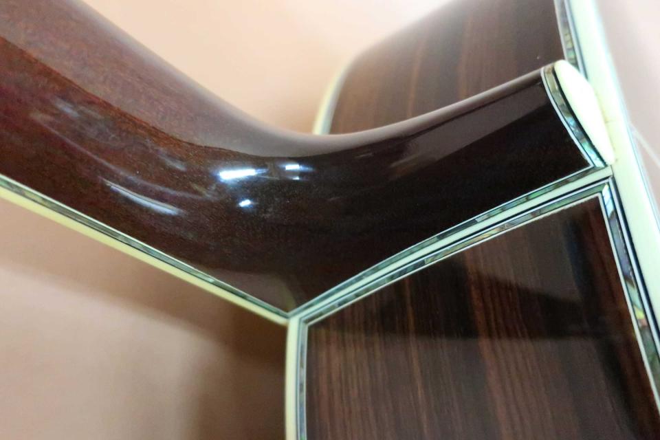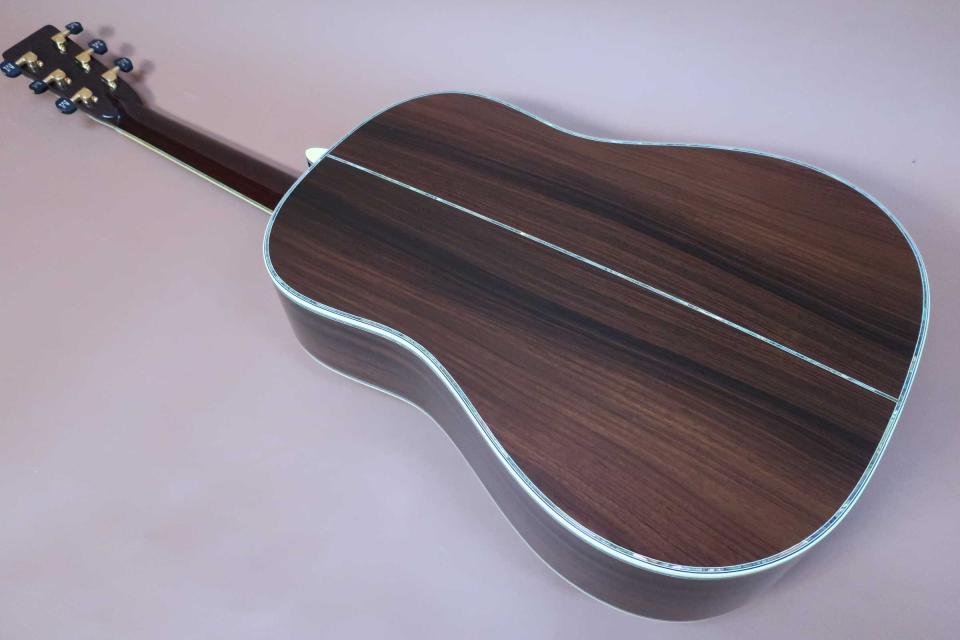 サウンドはフォワードシフト・スキャロップドXブレイシングが採用され深く奥行きの有る低域のスケール感の有る重厚な鳴りに、中域の粒立ちの良い音の立ち上がりは微妙なダッチでも音が潰れず実音と倍音のバランスも良く、煌びやかで艶やかなミストのように湧きあがる倍音が心地良く響く高音域の倍音は鈴鳴りと称される四十五サウンドです!どこまでも上品で華やかな鳴りは弾き込みにつれ、重曹的に重なる深い倍音に包まれ至福の時間になります。