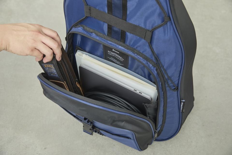 バッグ下部には最大でA4サイズまでを収納可能なメイン・ポケットがあり、ギターとともに持ち歩きたい様々な小物の収納を可能にしています。