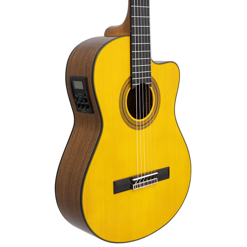 カッタウェイボディと通常よりも狭い48mmナットを採用し、 弾きやすく、アコースティックギターやエレキギターからの持ち替えにもお勧めです。