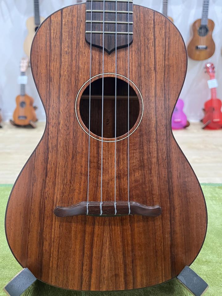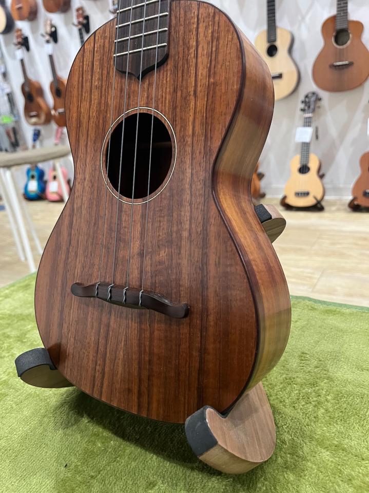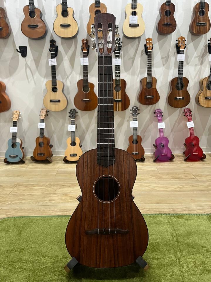 材料はハワイアンコアを用いており、荏胡麻油を用いた塗装で美しい杢目を際だたさています。音色はテナーらしく豊かな音量で広がりのある音色になっています。音の輪郭がくっきりとしていて、遠く離れた場所でもしっかりと芯のある音が聞こえる演達性に優れたウクレレです。