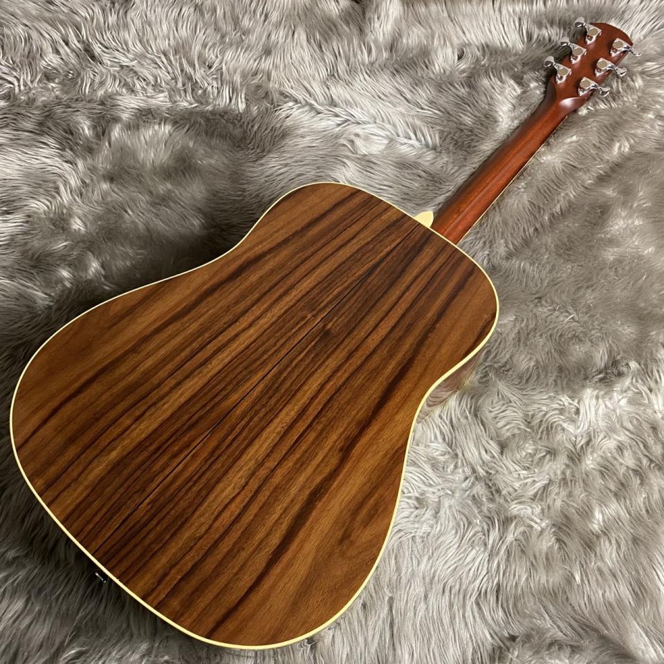 ドレッドノートサイズの85%という絶妙な大きさのボディが特徴のSL-RO1。ドレッドノートタイプの持つ豊かな低音と迫力のあるボリュームを持ちながら抱えやすさを向上。トップにはソリッドスプルース、サイド/バックにはインドネシアローズを採用。ローズウッドの高級感あふれる木目が魅力のモデルです。K.ヤイリ特有のヴィンテージテイストあふれる塗装やネックバインディング、小さいポジションマークなどルックスにもこだわった仕上がり。