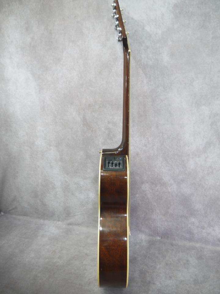 スプルーストップ、サイド/バックはマホガニーで構成された、やや小ぶりなエレアコ。