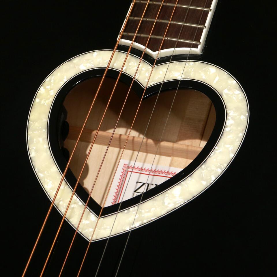 AAJ-2500HPH-Eは、精悍なブラックのボディー・カラーが魅力で、ゼマイティスならではの伝統的なハート型サウンドホールの周りに、ホワイト・パーロイドの特徴的なロゼッタを採り入れたモデルです。