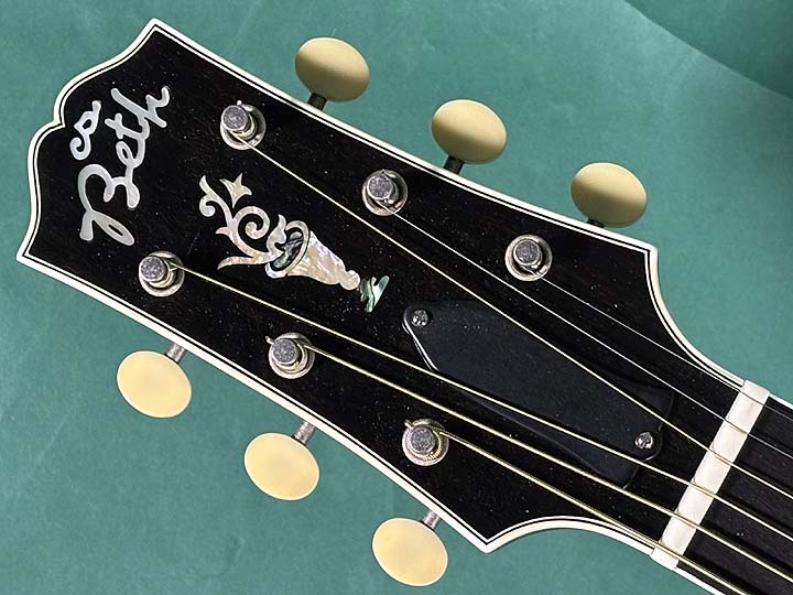 特にこだわり箇所としてはバック素材をメイプルではなく当時と同じバーチ材(板目)を使用しています。ヴァージトーンシステムを装着、スプレーを使わずにハンドラブドで着色、セラックバーニッシュ仕上で当時の風合いに近い雰囲気のある楽器です。
