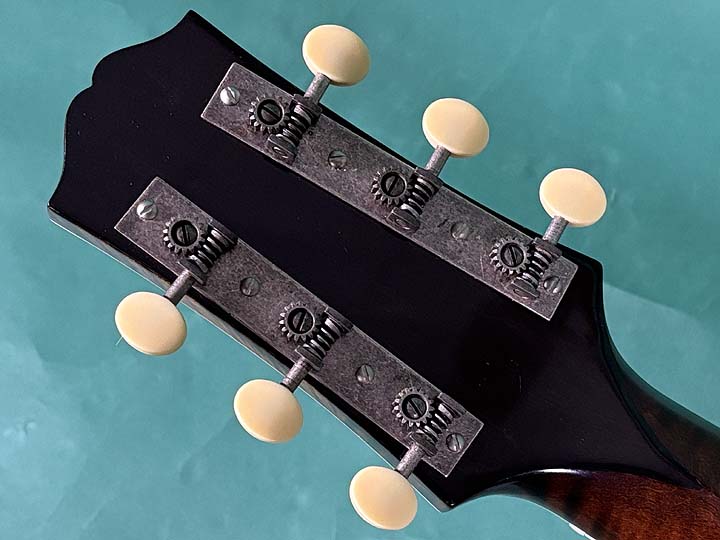 当時のオリジナル風のアンティークスタイルのペグを逆巻きでセットしています。