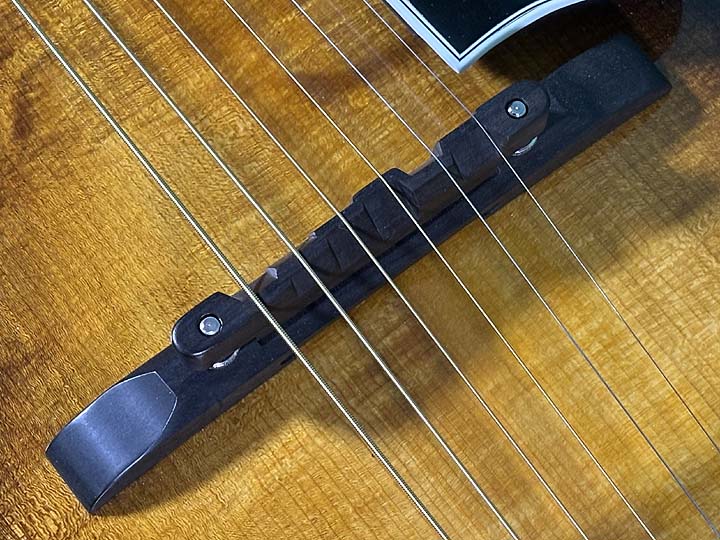 硬いピックで強く弾くには、もう少し高くセットしたほうがより馬力感が出ます。アジャスタブルブリッジですので、お好みで簡単に調整出来ます。