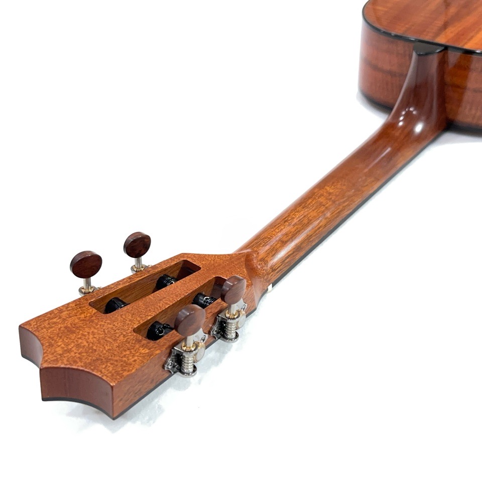 また、スロッテッド(くり抜き)ヘッド仕様によるしっかりとしたテンション感、そこから生まれる透き通るサウンドが魅力で、ソロウクレレにぴったりのモデルです。デラックスモデルらしい大変美しい杢目が魅力の一本。