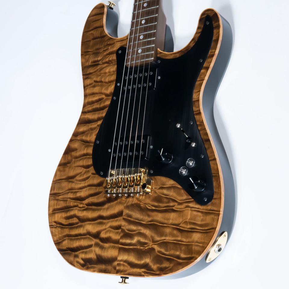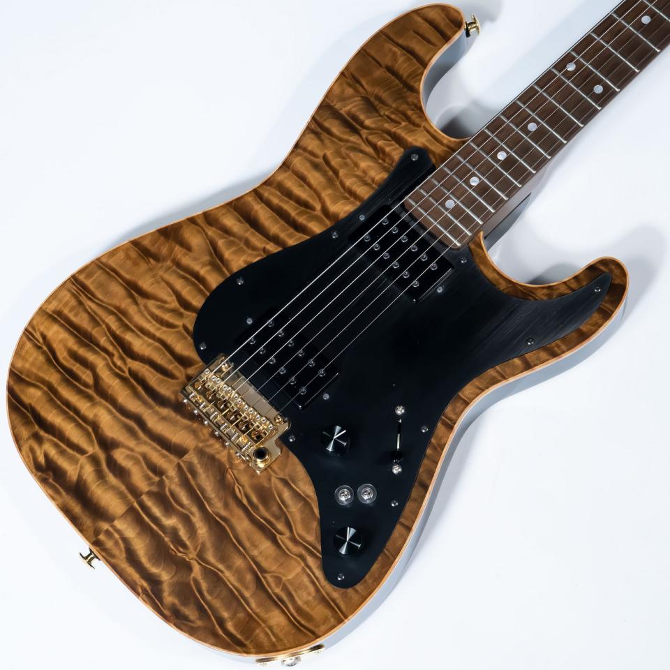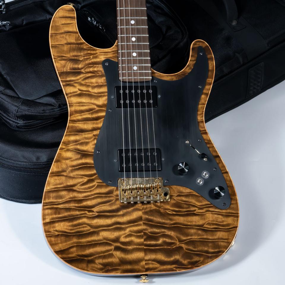 一目ご覧いただいただけで分かります、特上のAAAAAキルテッドメイプルを使用した2ハムPUにリバースヘッド。