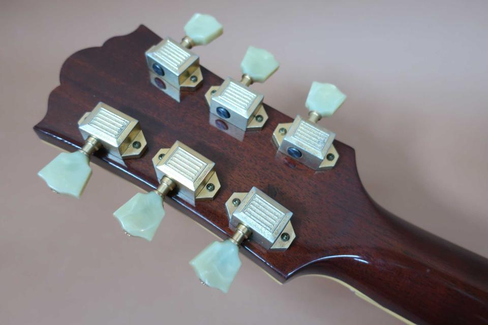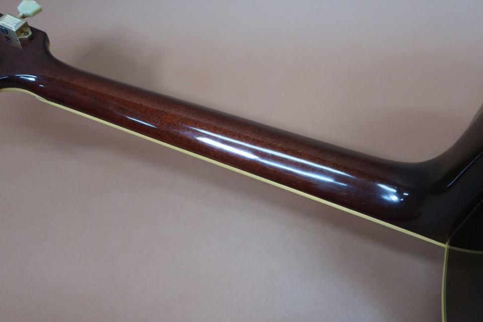 状態は使用感も少なく年代を感じさせない綺麗なコンディションを保っており、トップのピックガード横に軽微な擦り傷と小さな打コンがボディー下に有るぐらいで、サイド&バックも傷らしいも見受けられず、ネック裏も素晴らしく綺麗で演奏性も問題無くオリジナル・コンディションを保った極上品です。フレットの高さも有り8分目は残っておりすぐに交換などの心配はありません。またネックヒールのストラップピン打やピックアップの取付けや履歴も有りません。弦長約651mm、ナット幅約44mm,弦高は12F6弦で約2.5mm、1弦約2mm、弦高調整用のサドルの余裕も3mm有り、元起き反りも見受けられずネックを含めプレイヤビリティも良好です。オリジナルハードケースにケースうトラップも付属した初期の希少モデルです。中古市場でも品薄で滅多にでないコレクタブルな稀少モデルです!