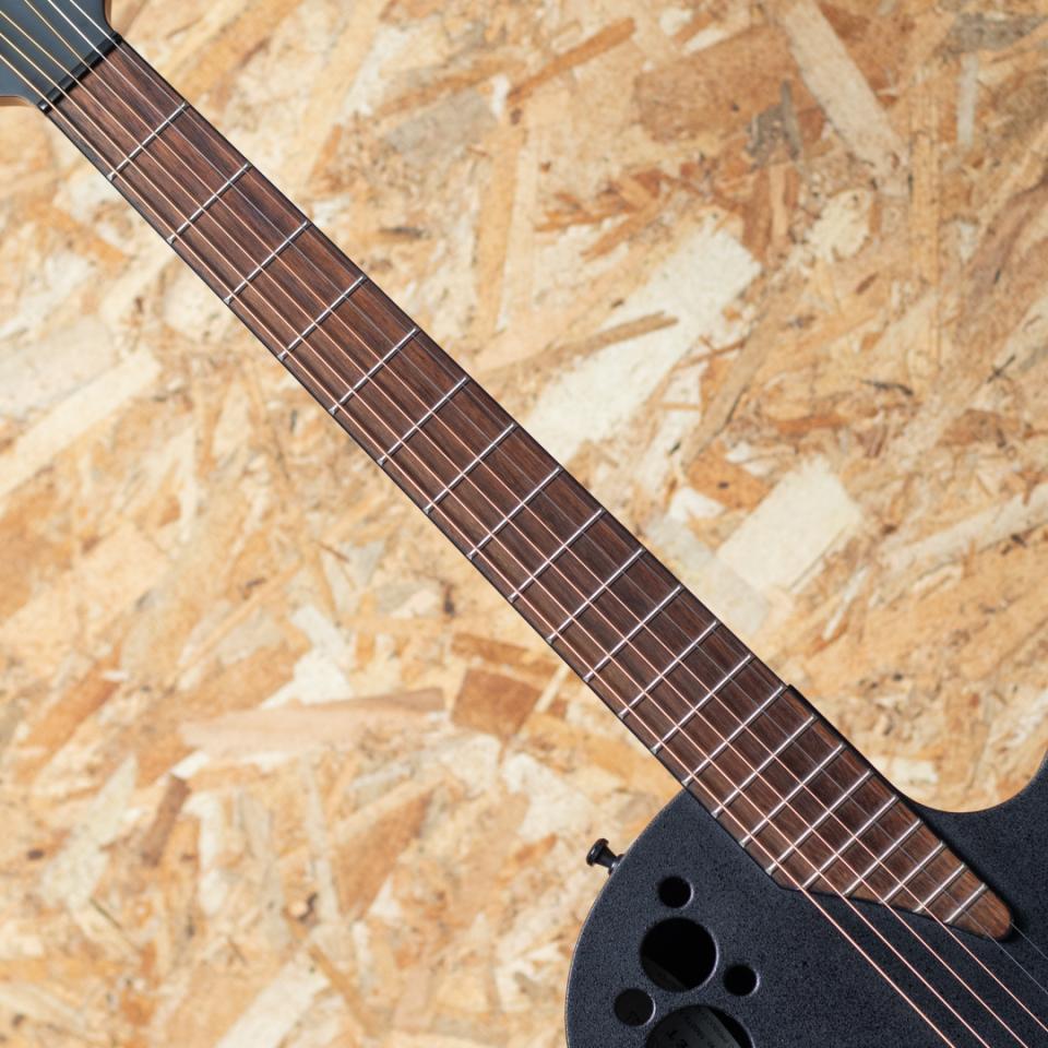 OVATIONのラインナップの中で最も薄いスーパーシャロウボディのUSED品。シンプルな装飾のブラックカラー。