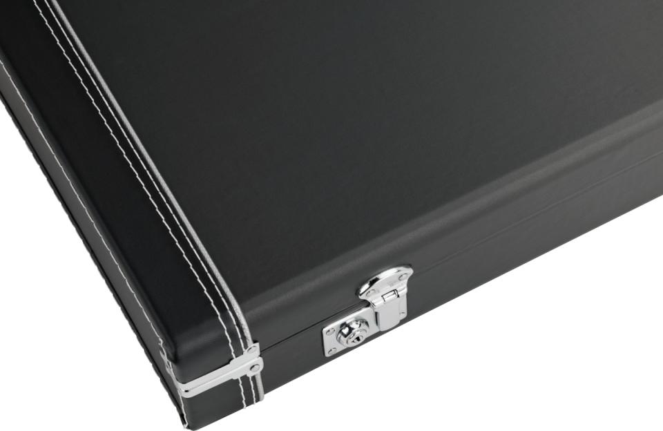 3-plyハードシェル木材を採用し、ビニールで包まれたスチール製のキャリーハンドルとドローラッチ、そしてケース全体に施されたトリプルクロムメッキのハードウェアが特徴的です。