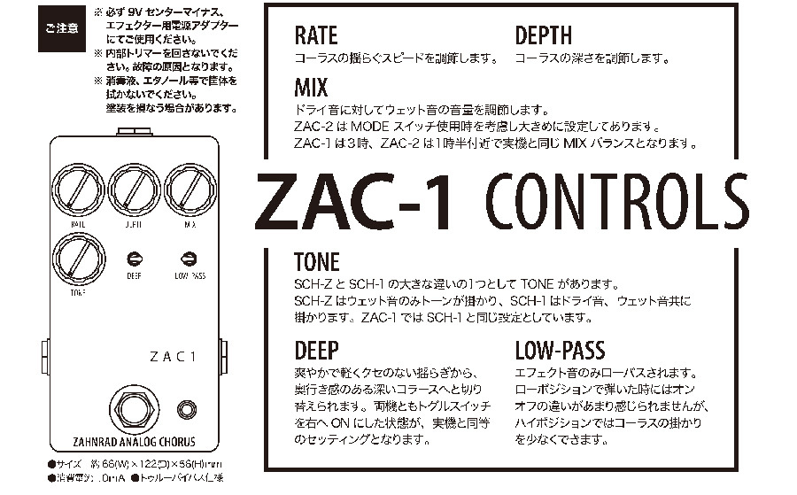 ZAC-2 にはMODE スイッチも備えディメンションとも