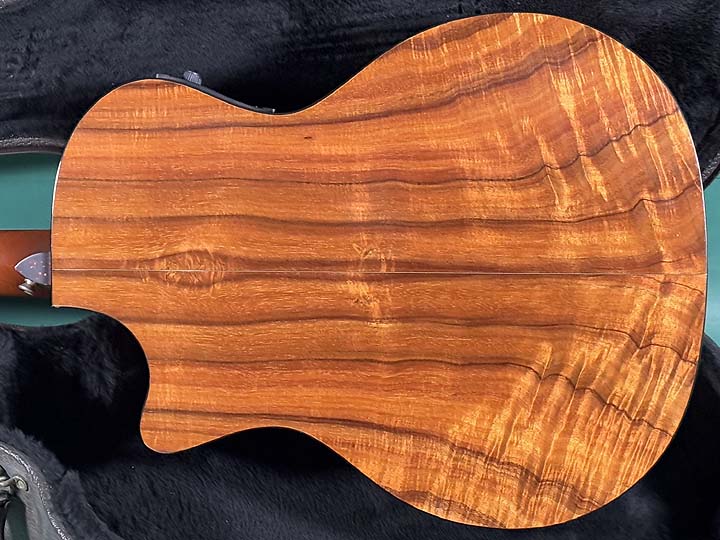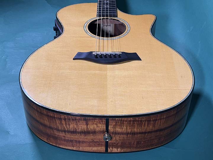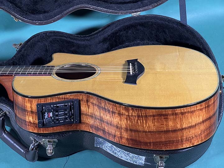 2002年製のK14ceが入荷しました。K14cがリリースされたのは1998年で、この時期のハワイアンコアは杢目が美しく目を惹くとともに、材料が多く贅沢に使用されていました。2002年はまだテイラー社開発のオリジナルピックアップシステム「ES-エクスプレッションシステム」がなく、FISHMAN製のオンボードプリアンプシステムが搭載されていました。