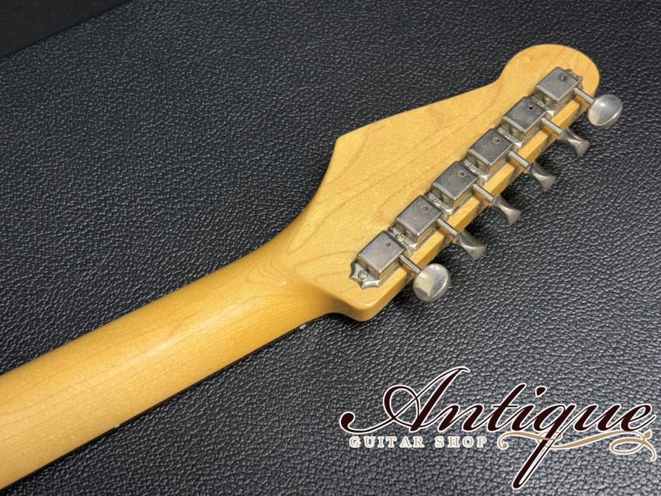 最後に状態としては、サウンドの良さを裏付けるよう、全体的に細かなスレやスクラッチ、塗装チップや打痕等が多数見受けられますが、カラーのせいかボロボロというイメージは感じられません。パーツ類についてはストラップピンのみロックタイプへ換装されておりますが、その他は全てオリジナルをキープしております。演奏面としてもネックコンディションは良好でトラスロッドの余裕もシッカリと残っており、フレットも多少の部分減りがありますが7~8部山程、もちろん電装関係の不具合もございません。ケースは汎用ですが、高級なMONO製のギグバッグ(MONO M80 Guitar Sleeve)が付属致します。