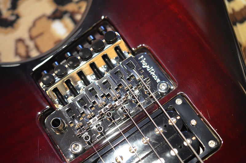 ピックアップはKillerオリジナルのLQ-500とLZ-510 Dyna-Biteです。ブリッジはFloyd Rose Thousandを搭載。アームアップが出来る様に落とし込んであります。フローティング・セッティングです。