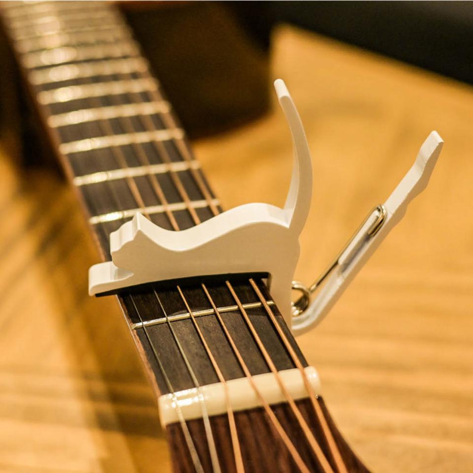 ユニークなデザイン:猫が背伸びをしているようなシルエットのカポタストで、見た目も楽しく、ギター演奏に彩りを加えます。