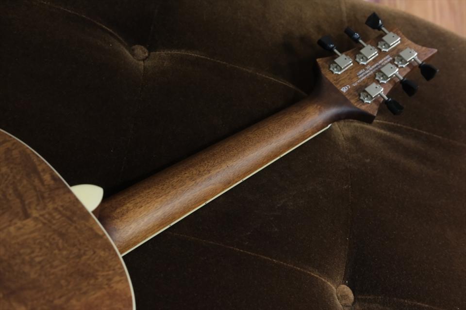ソリッド・マホガニー・トップ、エボニー指板&ブリッジ、ボーン・ナット&サドルを採用し、3色のカラー・ヴァリエーションには全て、特許を取得しているバード・インレイとヘッドストック・デザイン、そしてロゼッタとパーフリングにはヘリングボーンのデザインが施されています。