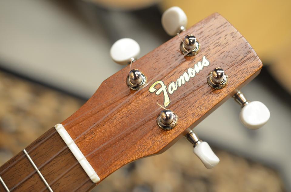 Famous(フェイマス):1919年創業の「喜八屋蓄音機」が前身。1955年よりウクレレの製造を行うキワヤ商会のオリジナルウクレレブランドで、国産ウクレレとして半世紀以上のロングセラー。弾きやすさ、音色のこだわり、強度等の改良を重ね、ユーザー層も広い。合板にもかかわらず1.6ミリの薄さで、強度と音色を追求している。現在は上位機種の単板モデル、限定モデルやカスタムモデルなども加わり、幅広い展開。(Famous/フェイマスのキーワード検索結果はこちら)