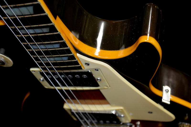 ボディのマホガニーも指板のローズウッド、ネックのメイプルも目の込んだ良材です。重量は約4.35kgと軽くは