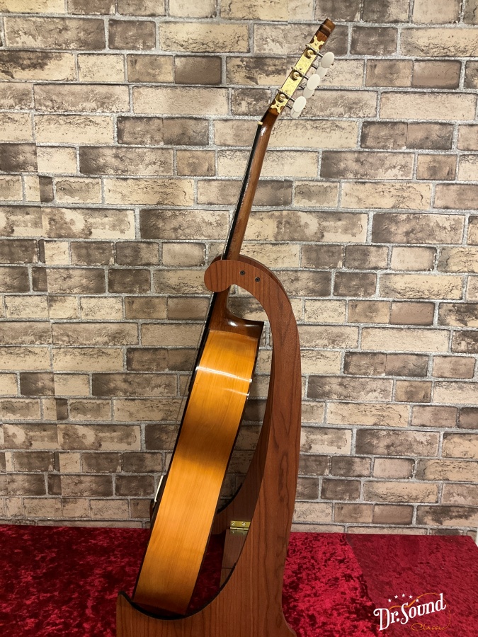 この1936年製は、表面板の右下部分や裏板のセンター付近などに割れ修理歴があるほか、ゴルペ板を剥がした跡が残っております。当初はフラメンコギターとして製作されたものですが、クラシックギタリストの方に愛奏されてきた1本です。